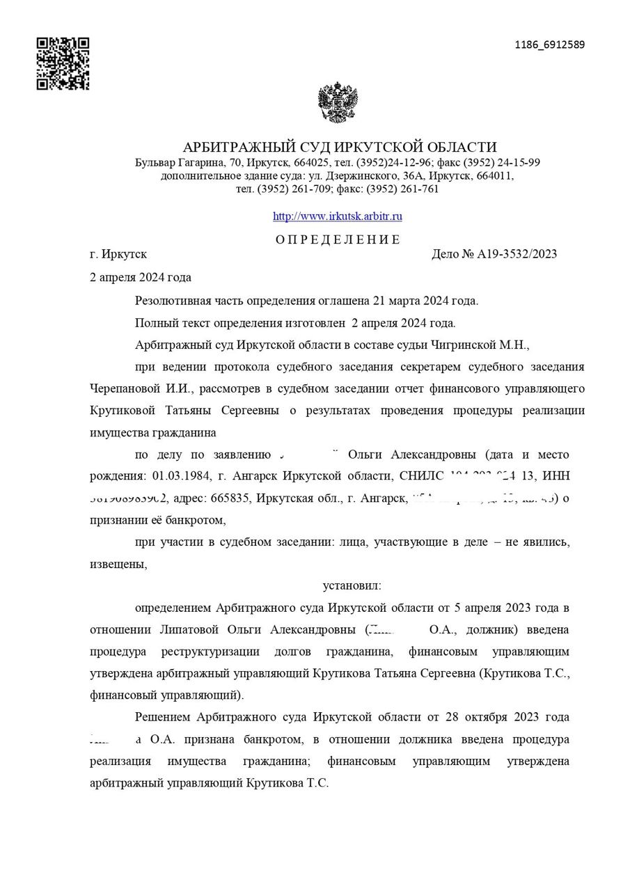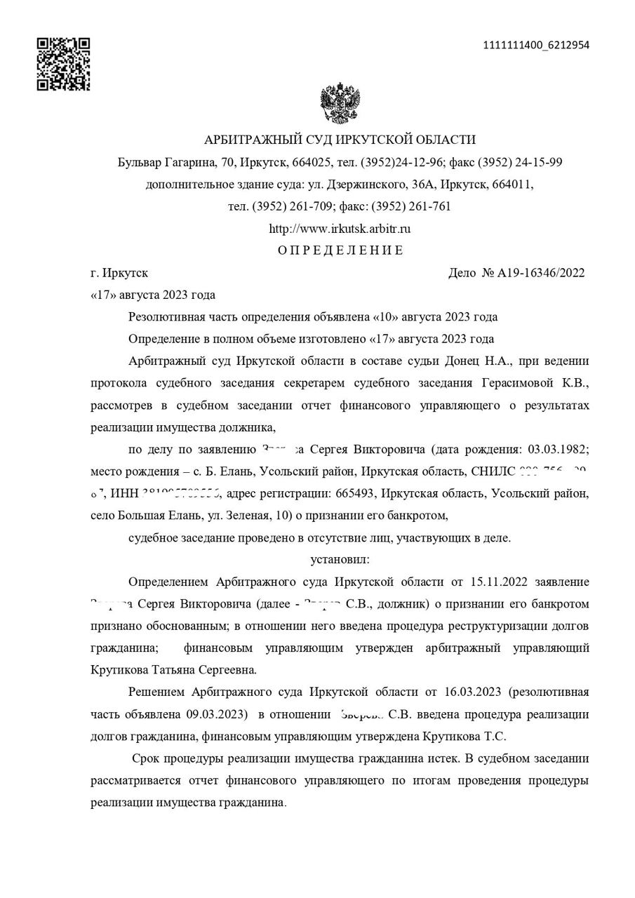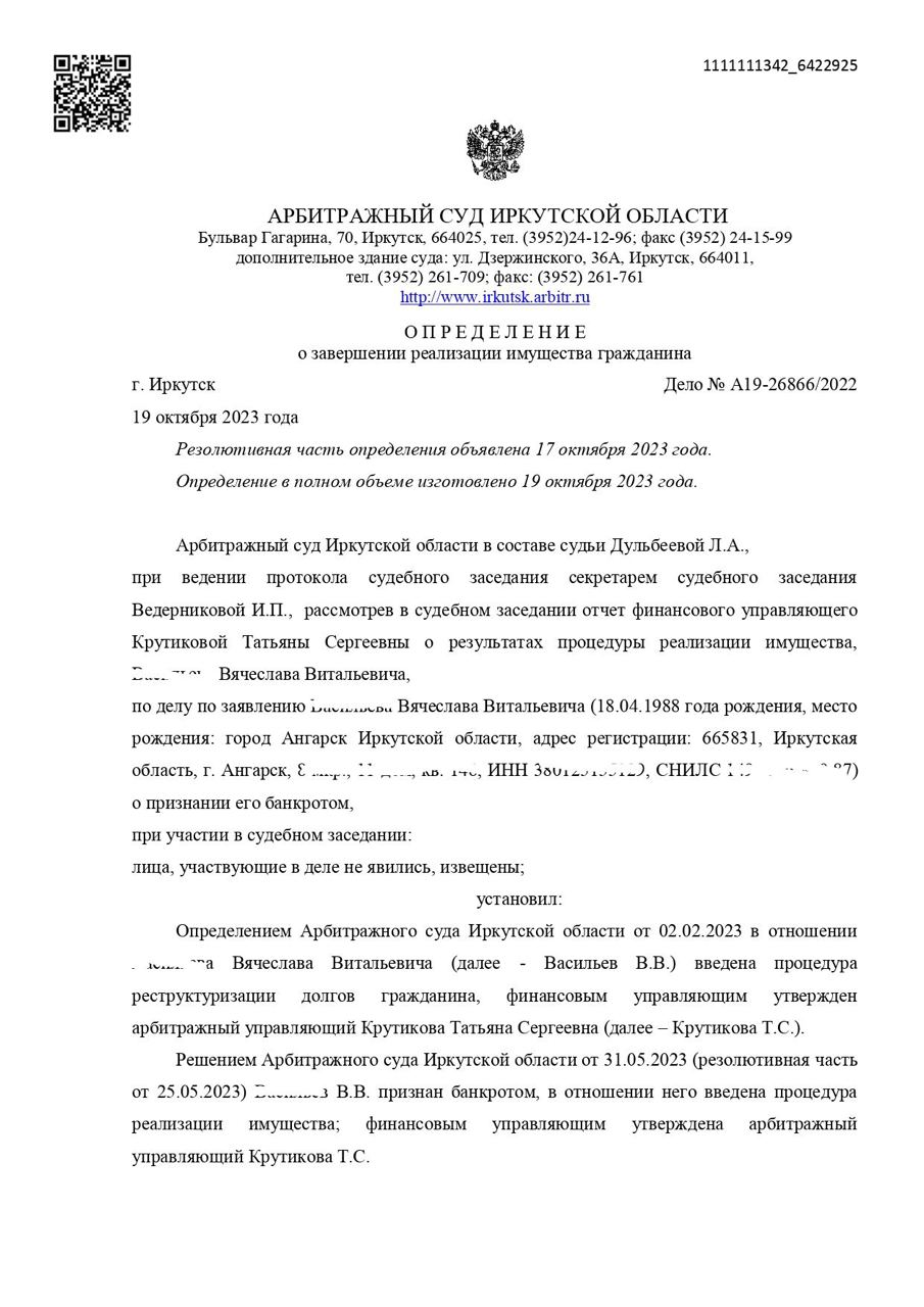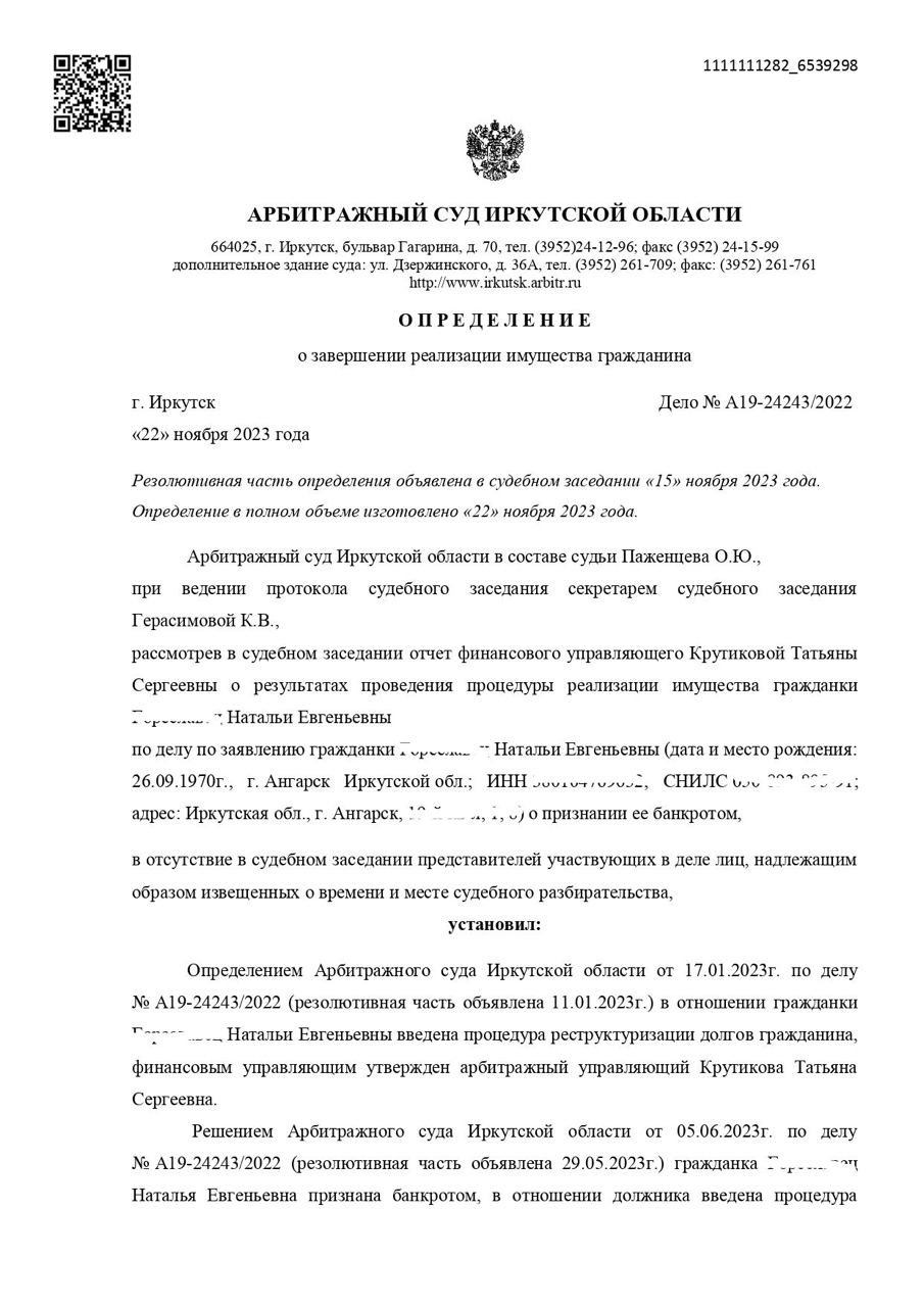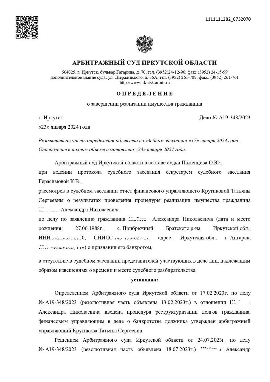 Решение Арбитражного суда о полном списании долгов